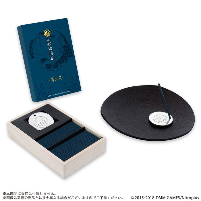 また、各刀剣男士の紋をデザインした錫製のお香立てが付属。本商品を焚き染めることで、刀剣男士をイメージしながら香りある豊かな暮らしを楽しむことができる。(※お香立てを置く香皿は付属しない。必ず香皿等を準備の上使用してほしい。)