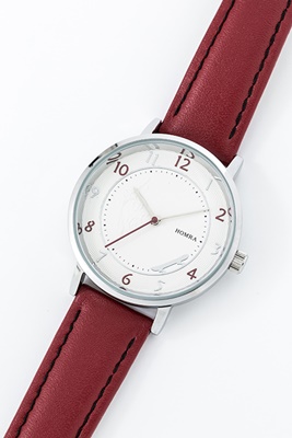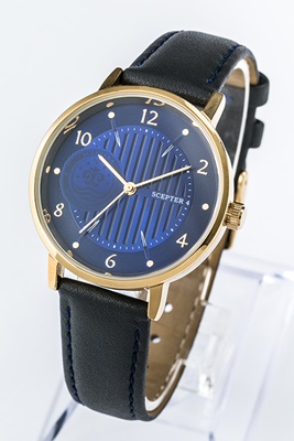 大きめのフェイスが存在感のある、シックでスタイリッシュな腕時計。伏見猿比古モデルの盤面には《セプター4》のマークやサーベルがあしらわれ、八田美咲モデルの盤面にはスケボーや《吠舞羅》のマークがさり気なくデザイン。