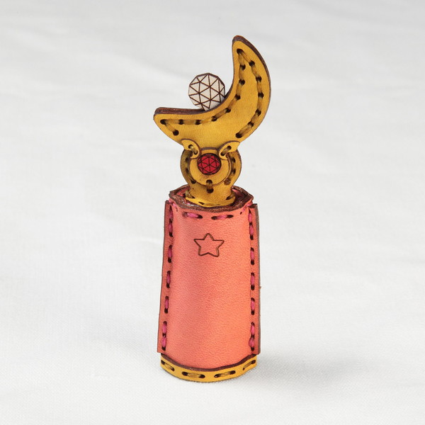 “印鑑ケース”は、『美少女戦士セーラームーン』の作中に登場するセーラームーンのアイテム“ムーンスティック”、“スパイラルハートムーンロッド”をモチーフにデザイン。手持ちの印鑑(対応サイズ:φ18.8×68.3mm)にすっぽり被せることができる。