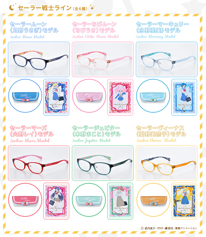 「セーラー戦士ライン」のモデルは、各戦士のカラー6種(青色、ピンク色、水色、赤色、緑色、オレンジ色)をフレーム色として採用。カジュアルシーンの使用がおすすめです。