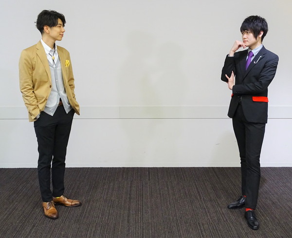 榊原:ぐっとくる要素が盛り沢山だ!という印象でした。内面的部分でいえばユウキくんは、『ネガティブ』、『病みがち』、『被害妄想気味』、そして『ワタルさんに心酔している』という非常に尖った部分をたくさん持っています。脆く弱い……しかしワタルさんが絡んだ時だけは強くなる。そんなギャップからか、初めて見た時から演じれば絶対に楽しいという確信があり、演じられる機会が非常に楽しみでした。スーツという点でいえば僕は実はスーツが大好きなので、スーツ男子を演じられる事も、また自分自身がそれを着られるチャンスがあると言う事もとても嬉しかったです。サイズ感がピッタリのスーツを着た時のあの何でも出来そうな高揚感はなんなんでしょうね(笑)しかもユウキくんのスーツは僕の心の中の中二病ソウルに働きかける要素が盛り沢山でテンションがあがります。ありがとうございます。