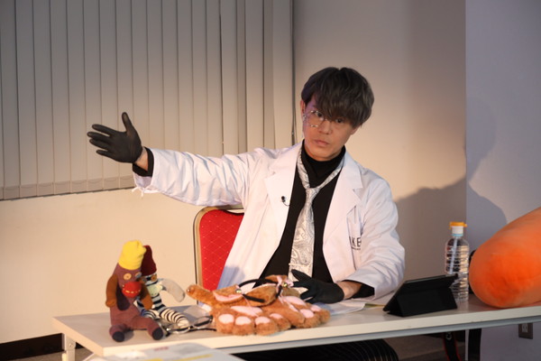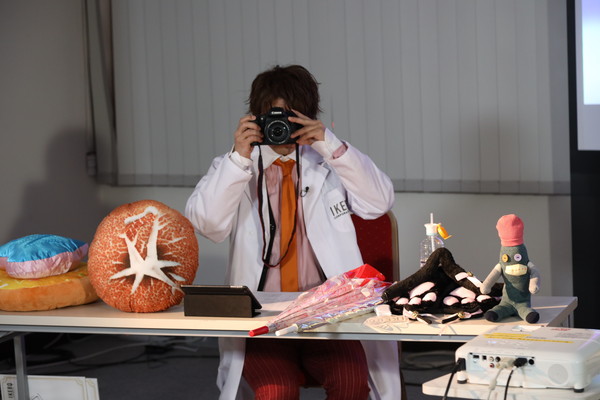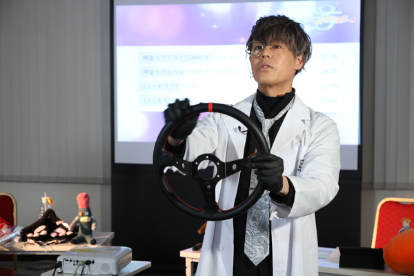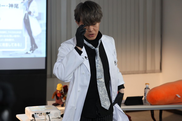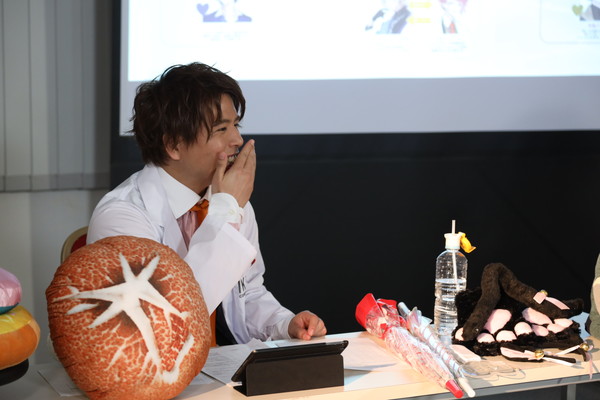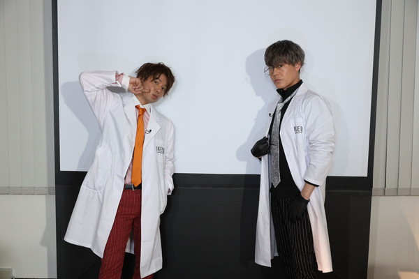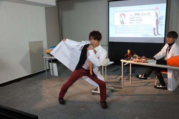 生配信は、神尾が過去イベントを見返し「実に興味深い」とつぶやくところからスタート。その身には白衣を纏い、「研究開発部」の名にふさわしく怪しい雰囲気を醸し出している。同じく白衣姿で登場した仲村も演じる役柄通り、掴みどころのないキャラクター性で場を盛り上げる。