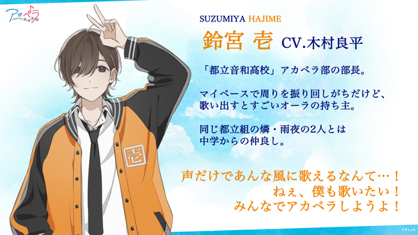 柿原 おそらく、キャラクターのなかで一番自分にコンプレックスを抱えているのはルカなんです。彼のプロフィールにも「自由に振舞う壱の姿に感化され、自分に自信を持つためにアカペラ部に入部する」とありますが、それだけ容姿にコンプレックスがあって、自分を表に出すことができないキャラクター。なので、ルカが壱を尊敬する気持ちもよくわかります。壱のように自分を表現できたらいいなと思う人は多いはず。それくらい、壱は一番の自由人なんです。すごくフラットに、誰に遠慮することもなくほかのキャラクターを巻き込んで行ける壱だからこそ、リードボーカルになるのも自然だなと思いました。