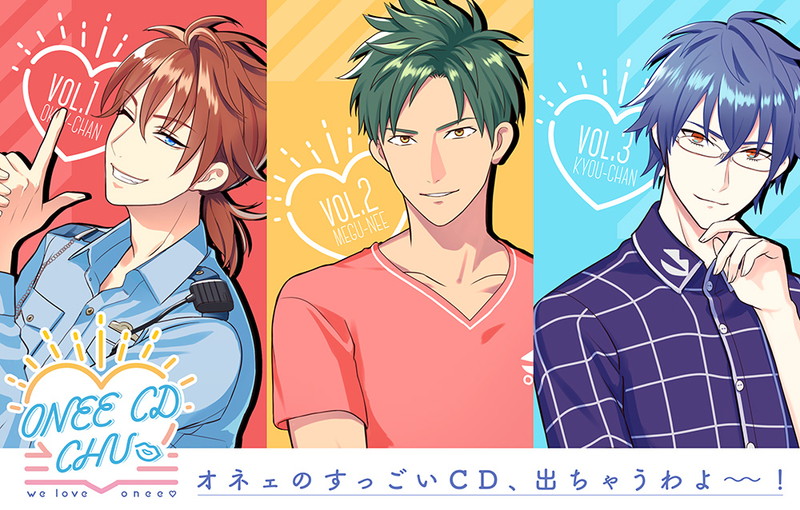 魅力的なオネェを演じるキャストは、オネェ警官“菅 慶一(すが けいいち)”に佐藤拓也さん、オネェ料理人“大鷹 恵(おおたか めぐむ)”に興津和幸さん、オネェ義兄“日下部恭平(くさかべ きょうへい)”に前野智昭さんが起用されている。