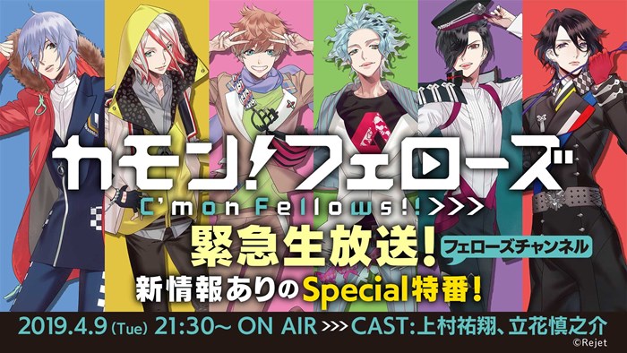『カモンフェローズ!』上村祐翔、立花慎之介ら出演の生放送決定。番組内ではRejetからの新情報も!