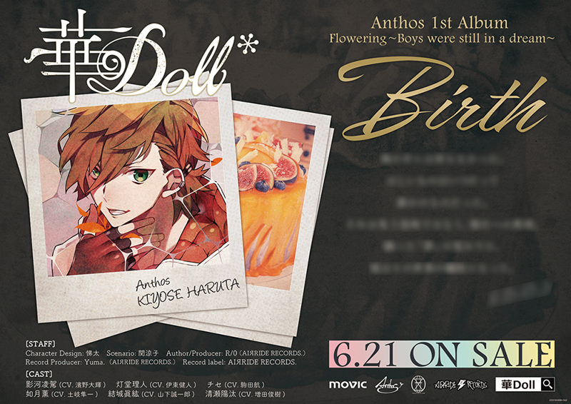 “Anthos”による1stアルバム『華Doll*1st season ~Flowering~1巻『Birth』の発売(6月21日発売)に先駆けて、『華Doll*』の広告が池袋をジャックすることが決定した。