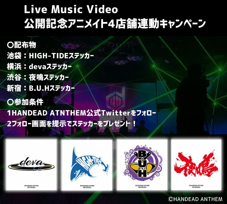 『HANDEAD ANTHEM』小松昌平、益山武明、増元拓也、濱 健人出演の『Live Music Video』公開! アニメイトにてキャンペーン実施