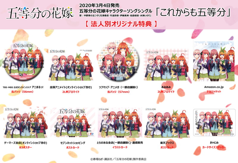 『五等分の花嫁』五つ子が歌う『これからも五等分』試聴動画が公開。梅木 葵によるジャケット&特典絵柄も