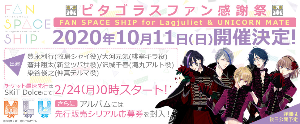 さらに、ピタゴラスファン感謝祭“FAN SPACE SHIP for Lagjuliet & UNICORN MATE”の開催も決定した。