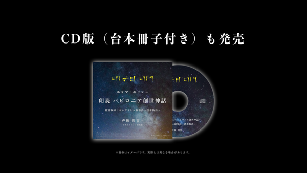 朗読CD「エヌマ・エリシュ~バビロニア創世神話」&「ギルガメシュ叙事詩~洪水物語」は、本日よりECサイトにて予約販売を開始。CD版は池袋サンシャインシティ文化会館ビル7階の古代オリエント博物館ミュージアムショップでも9月28日以降取り扱うとのこと。また、同じくスマートフォンアプリ「Pokke」上でアプリ版の同コンテンツを購入・視聴できるように。「Pokke」では音声コンテンツをアプリ内にダウンロードできるので、何度でも聴くことができる。