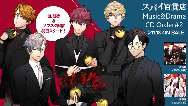 11月18日(水)にドラマCD第2弾『スパイ百貨店 Music&Drama CD Order#2』が発売。さらに、音楽配信サイトにてDL販売およびサブスクリプション配信も開始となった。