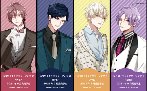 『元号男子』からキャラクターソングが2021年5月より5ヶ月連続リリースされれる。第一弾となる元号男子キャラクターソング〈1〉は大正(CV.立花慎之介)・昭和(CV.梅原裕一郎)・平成(CV.江口拓也)・令和(CV.斉藤壮馬)による集合ソング。時代をテーマとした4人の曲は必聴です! プロモーションビデオも公開されているので、是非チェック。