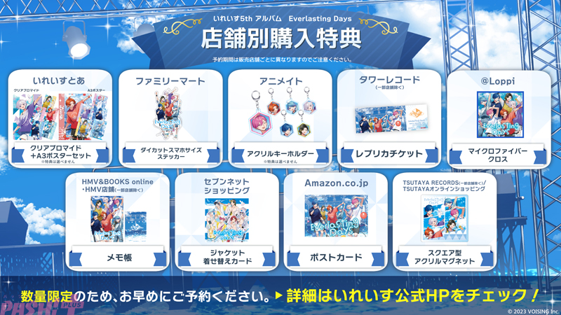 いれいす公式オンラインショップのいれいすとあでは6月18日、各販売店舗では6月12日より予約開始。店舗によって予約終了時期が異なります。