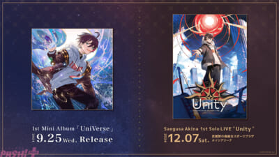 また、自身初となるソロライブ『Saegusa Akina 1st Solo LIVE “Unity”』の開催も同時発表。2024年12月7日(土)、武蔵野の森 総合スポーツプラザ メインアリーナにて開催。詳細は随時にじさんじ公式Xおよび特設サイトにて告知されます。そして、今回の発表と同時に、アルバム・ライブともに「アーティストビジュアル」も初公開となりました。