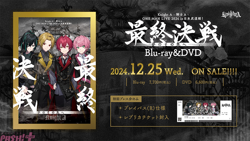 STPRは、所属のビジュアル系2.5次元歌い手グループ「Knight A – 騎士A -(騎士A)」が、騎士Aによる初の日本武道館ライブ公演「Knight A – 騎士A – ONE MAN LIVE 2024 in 日本武道館! ” 最終決戦 ” 夢のその先へ____。」の模様を収録した初のLIVE Blu-ray&DVDを、2024年12月25日(水)に発売します。