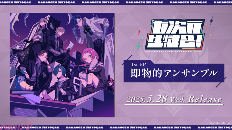 本イベントにて初披露された新曲3曲に加え、新たに書き下ろされた楽曲1曲を含んだ1st EP「即物的アンサンブル」を2025年5月28日(水)に発売。七次元生徒会!のもつコミカルな側面から華やかでどこか刹那的な側面をバラエティー豊かな4曲で表現しています。初回生産限定盤には各メンバーが2人1組に分かれ歌唱したカバー3曲を収録した特典CDが同梱されます。
