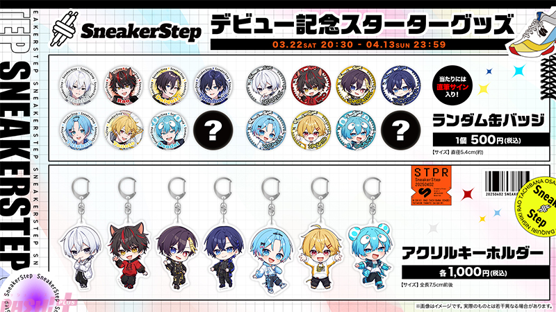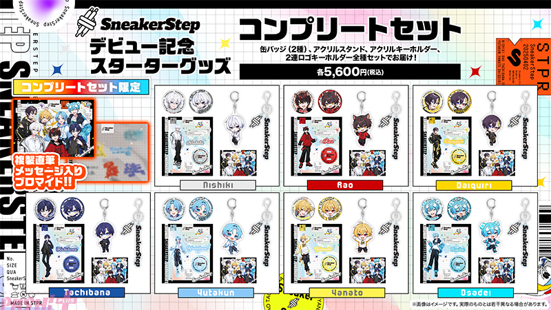 「SneakerStep」初となるオフィシャルグッズ、デビュー記念スターターグッズの発売が決定しました。最初に揃えたい必須アイテム全4種が登場。さらにメンバーごとの「コンプリートセット」もラインナップ。コンプリートセットだけで手に入る直筆複製メッセージ入りブロマイドは必見です。