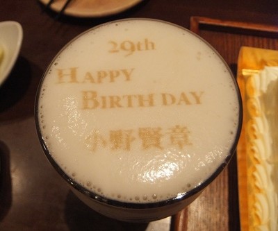 特製のバースデーケーキに乾杯し、