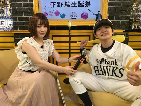 そして着替える衣装の全容が見えてきた下野さんは「アッハッハッハ!そういうことね!そうかそうか!」となぜか大爆笑。そしてカーテンの向こうから姿を現したのは、内田さんが愛するプロ野球チーム「福岡ソフトバンクホークス」のユニフォームに身を包んだ下野さん。スポーツサングラスを着用したレアな姿に視聴者からも「かわいい!」「カッコいい!」「すごく似合ってる!」「ホームラン打ってー!」という大きな反響が寄せられます。