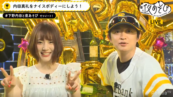 “無料で楽しめるインターネットテレビ局”「AbemaTV(アベマティーヴィー)」は、「アニメLIVEチャンネル」において、2019年4月17日(水)の夜10時から夜11時30分にわたり、『声優と夜あそび【水:下野紘×内田真礼】 #2』を放送いたしました。本放送では、39歳の誕生日を迎える下野紘さんのバースデープチドッキリをはじめ、下野さんの主演映画『クロノス・ジョウンターの伝説』の紹介や、内田さんイチオシコーデへの“生着替え”など、さまざまな企画を行いました。