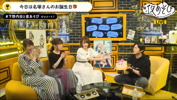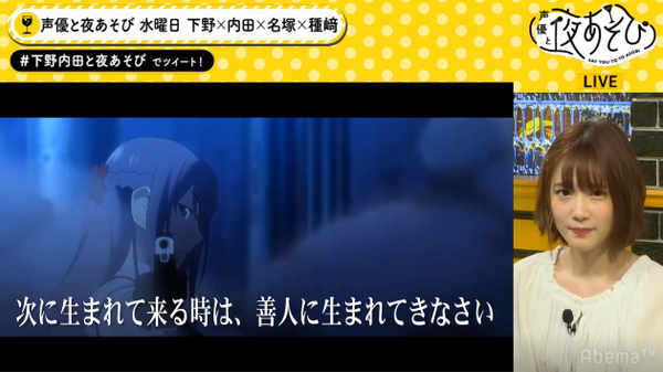 〈「アニメLIVE チャンネル」/『声優と夜あそび【水:下野紘×内田真礼】#3 名塚佳織と種﨑敦美がゲストに登場!』〉