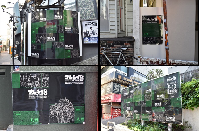 『サムライ8 八丸伝』の新連載を記念して、5月10日(金)~16日(木)の7日間、本来公開されることのない100パターン以上に及ぶ岸本のネームを使った広告を公開中。また、5月10日(金)から『サムライ8 八丸伝』公式HPでも一部公開中だ。さらに本日5月13日(月)からは東京メトロ半蔵門線 渋谷駅の地下道壁面(7A出口よりすぐ)にて超大型広告も展開中。