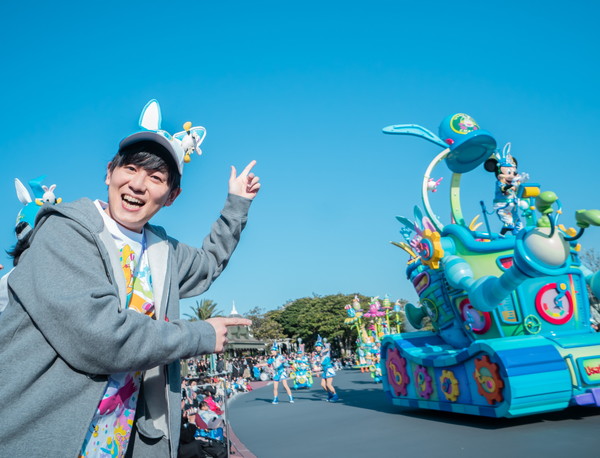 パレードルートでは、“うさたまチェイサー”に扮したディズニーの仲間たちが、パーク中に逃げ出した“うさたま”を追いかけるヘンテコ楽しいパレード「うさたま大脱走!」を公演します。