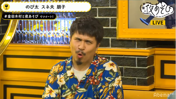 “無料で楽しめるインターネットテレビ局”「AbemaTV(アベマティーヴィー)」は、「アニメLIVEチャンネル」において、2019 年6 月11 日(火)の夜10 時から夜11 時30 分にわたり、『声優と夜あそび【火:金田朋子×木村昴】 #10 ジャイアンがゲストに登場!』を放送いたしました。本放送ではジャイアンこと剛田武さんがゲストとして出演し、大興奮の金田さんと名台詞を叫んだり、“心の友”になったり、生歌を披露したりと番組を楽しんでゆきました。