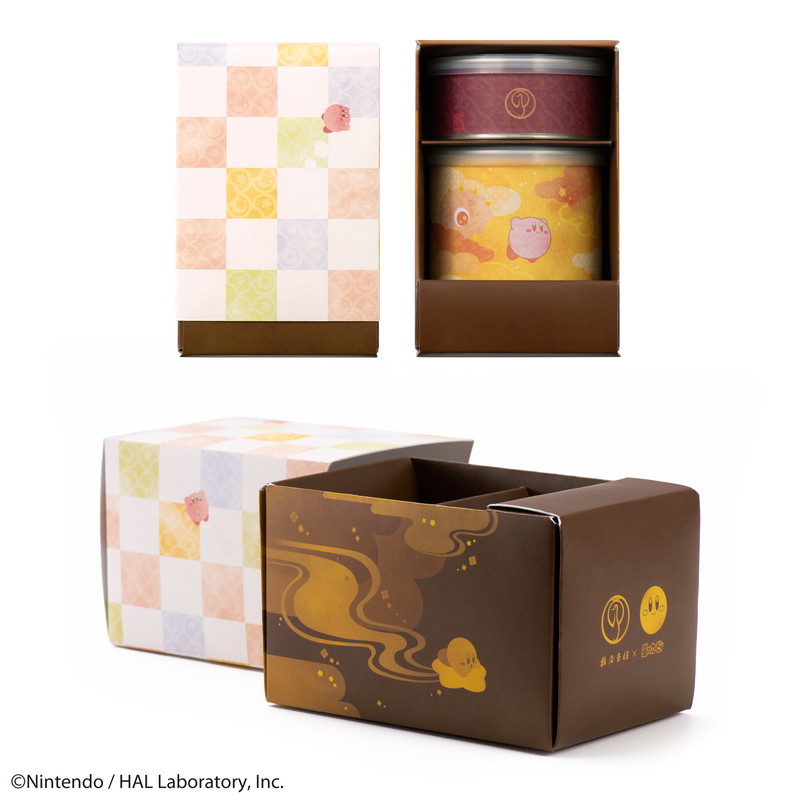 内箱には金蒔絵風にアレンジされたカービィがあしらわれ、市松模様などの伝統的な紋様の中にもキャラクターやゲーム内のパターンデザインをそっとしのばせるなど、すみずみまで和×カービィにこだわったコレクション性の高いデザインとなっている。