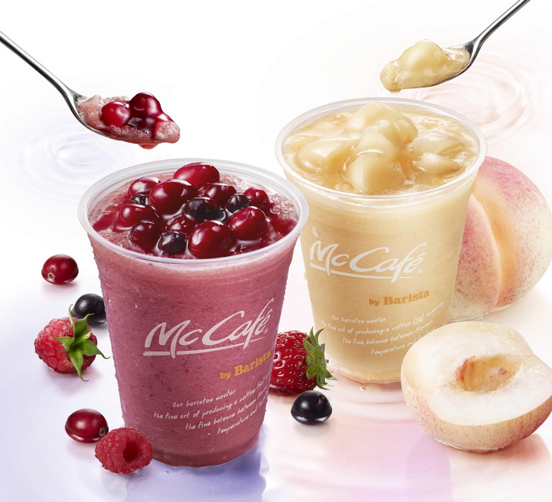 マクドナルドの“McCafé by Barista”(マックカフェ バイ バリスタ)併設店舗にて、7月10日より“ミックスベリースムージー”、“倍ミックスベリースムージー”が期間限定で販売される。