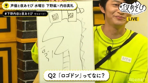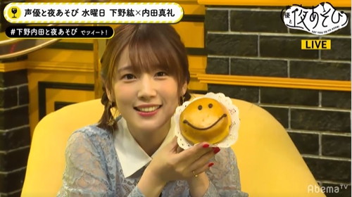 『声優と夜あそび』下野 紘&内田真礼がドーナツでほっと一息? “サコッシュ”や“ロゴドン”から連想する絵を下野さんが披露!