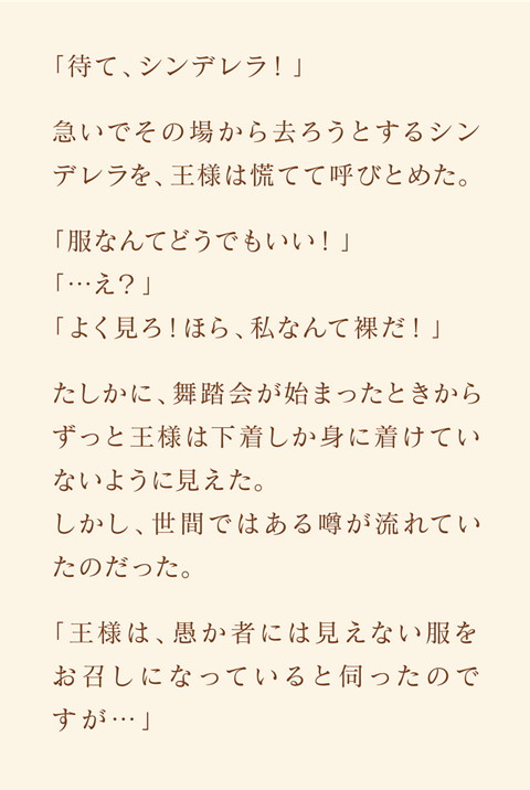 特別サイトには、9つの組み合わせを読書で楽しめるデジタルブック版も展開。“裸の王様&シンデレラ”では、0時を過ぎて元の姿に戻ったシンデレラに、自身の姿を重ねて「愛さえあれば、格好なんて関係ない」と説くなど、ヒーローならではのちょっといい話で幕を閉じる短編ストーリーとなっており、朗読ムービーとはまた違った楽しみ方となっている。