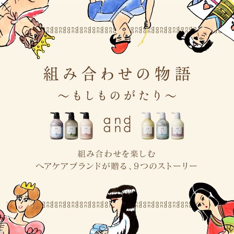 シャンプーとトリートメントを自由に組み合わせて使う新しいヘアケアブランド“and and(アンドアンド)”より、商品特長である“自由な組み合わせ”の楽しさを訴求すべく、誰もが知る童話のヒーローとヒロインの“もしもの組み合わせ”を物語にした朗読ムービーとデジタルブックが公開された。