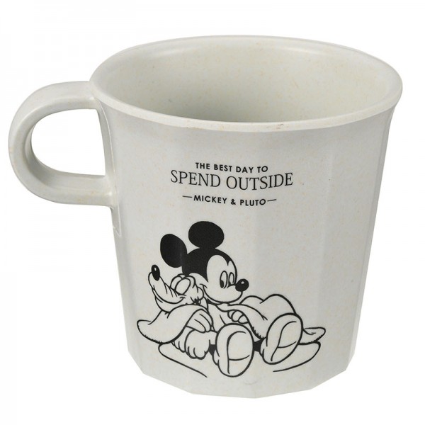 バンブーファイバーのプレート。ミッキー&プルートのデザインが登場です。樹脂に竹の繊維を混ぜた素材、バンブーファイバーを使用したテーブルウェア。陶器のようにも見えるマットな質感が上品で心地よく、くつろいでいるディズニーキャラクターのアートと相性◎。落ち着きのある佇まいが素敵です。衝撃に強く、コンパクトに重なるので、持ち運びにも便利。室内だけでなく屋外でも気負いなく使えます。ご自宅のベランダや庭などでの食事を豊かに演出してくれます。
