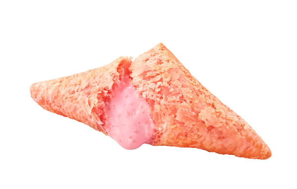 “三角チョコパイ”は、パイ生地を何層にも重ねることで生まれるサクサクした食感の三角パイに、とろ〜りあたたかいチョコクリームのハーモニーが魅力の、マクドナルドの期間限定定番スイーツ。今年は、あまおうのほんのりとした甘酸っぱさが味わえる、とろ〜り“あまおうチョコクリーム”が特長の“三角チョコパイ あまおう”が新登場! あまおうパウダーを使用し、口いっぱいに広がるあまおうの香りと甘酸っぱい味わいを、サクサク食感とともに楽しめる。