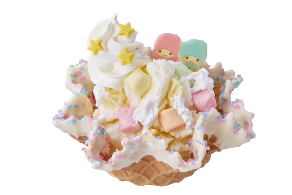 内容:リッチミルクアイスクリーム、ホワイトチョコチップ、パステルマシュマロ、ホイップクリーム、スターチョコ、キキララチョコプレート、カラースノーチョコワッフルボール