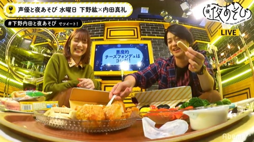 『声優と夜あそび』下野 紘&内田真礼がチーズフォンデュのベストマッチを探す! 一番の“悪魔的うまさ”は意外なアレ!?