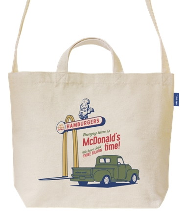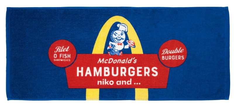『マクドナルドの福袋2020』は、“アメリカンヴィンテージ”をテーマに、マクドナルド創成期のロゴマークや初代マスコットキャラクター“SPEEDEE(スピーディー)”、niko and …のロゴマークなどがデザインされた“2WAYトートバッグ”、“フェイスタオル”、“デリカップ”のオリジナルグッズのほか、“ティロリ♪ティロリ♪”というマクドナルドお馴染みのメロディが鳴る“ポテトタイマー”、そして“マクドナルド商品無料券(税込3,270円相当)”が入った、大変お得で盛りだくさんな福袋。