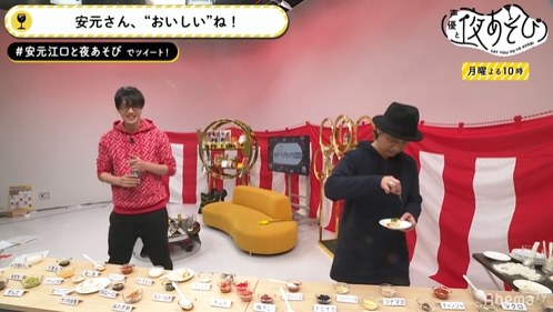 口直しにと差し出された安元さんは、鳥海スペシャルを食べて「普通に美味ぇわ!」と笑顔を浮かべました。ほかにも、本放送では月曜日定番の「視聴者の心を読め!夜あそびダービー」や「味深ワード」などのコーナーを実施。MCの2人はユーモアたっぷりの鳥海さんと90分の生放送を楽しみました。