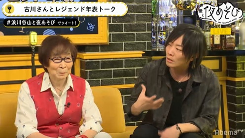1月23日の夜10時から夜11時30分にわたり、『声優と夜あそび【木:浪川大輔×谷山紀章】#40 古川登志夫がゲストに登場!』が放送されました。本放送では「ゲストてんこ盛りスペシャル月間」の一環として古川登志夫さんをゲストに招き、古川さんの半生を振り返る「古川さんと!レジェンド年表トーク」や、深い話や裏話を訊ねる「古川さんに! ギリギリ質問」など、さまざまなコーナーが行われました。
