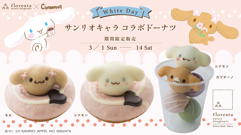 自然な素材にこだわる手作りドーナツ専門店“フロレスタ”に、今回はサンリオの大人気キャラクター・シナモロールとコラボしたホワイトデードーナツが2週間限定で登場! 3月6日はシナモンのバースデーでもある。今年のホワイトデーウィークは、シナモンとフロレスタのドーナツが美味しく楽しい時間をお届け♪ 近くに店舗がない場合は、おとりよせサイトがあるので利用しよう。