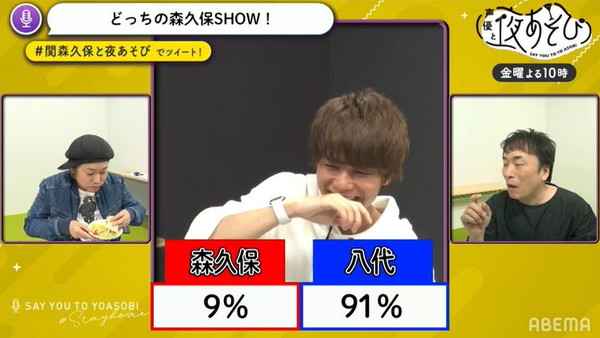 配信内では、「どっちの森久保 SHOW」と題したコーナーを実施。以前から番組内で「森久保さんのモノマネが得意」だと言われてきた八代さん。本配信では、それを実証すべく5つのお題で森久保さんか八代さんのどちらかが喋り、アンケート機能を使って視聴者が正解を当てます。