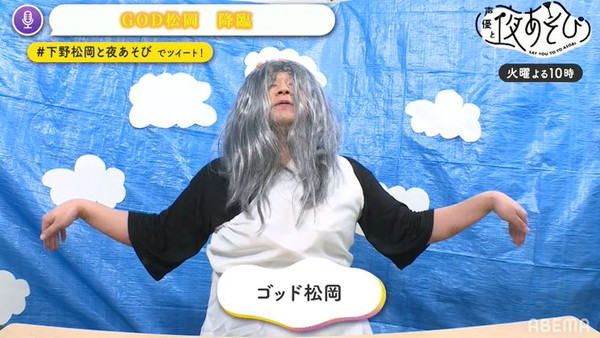 配信内では「教えて!ゴッド松岡」と題して、松岡さんが下野さんの質問に答えるコーナーを実施。CMが明けると、松岡さんはウィッグと仮装で“神”に変身。ノリノリで神のポーズ(?)をとる松岡さんに、下野さんも大爆笑します。松岡さんは「好きなパンツの色はピンクというのは本当ですか?」という赤裸々な質問から、「UFO、UMA、超能力、幽霊の中で、ガチで実在すると思うのは?」など、さまざまな質問に答えてゆきます。「もし明日地球が滅亡するとしたら神はどうしますか?」という質問に対しては、「ハンバーグを作ろう」「最後の晩餐は(ハンバーグで)けりをつけよう」と回答。大好物のハンバーグを自分で作っていることも明かしました。
