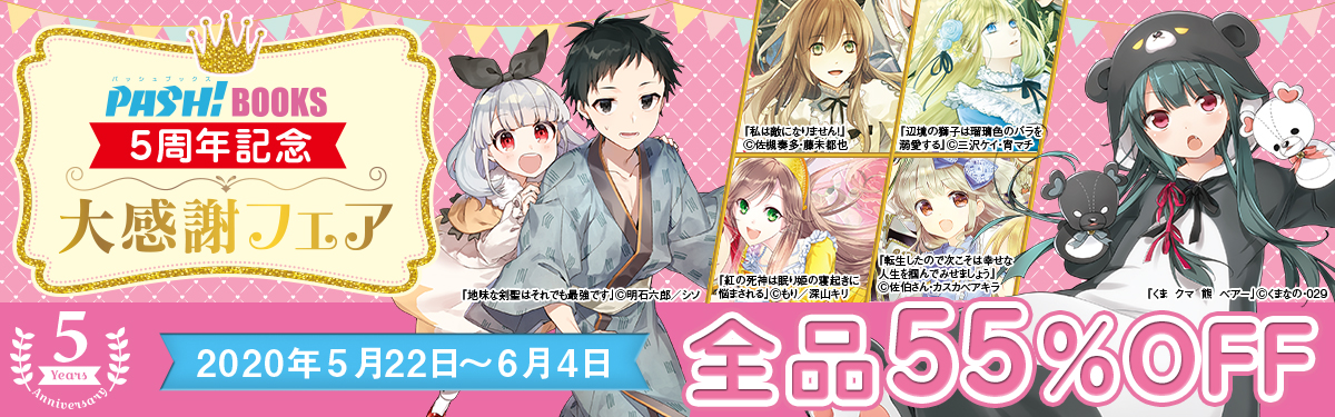 PASH!ブックス5周年記念セール 各電子書店で6月4日まで開催!