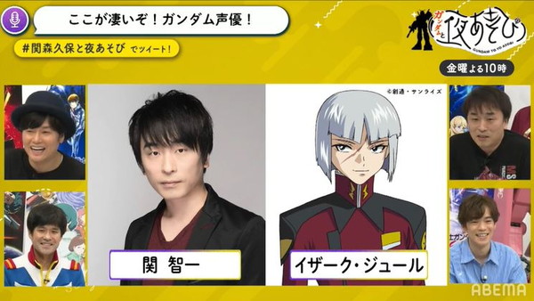 そして、6月8日(月)から、やっと『声優と夜あそび 2020』の新スタジオから配信に。7月24日(金)の、『声優と夜あそび 金【関智一×森久保祥太郎】 #6 小野賢章と若井おさむがゲストに登場!』では、スペシャル企画「ガンダムと夜あそび」として、劇場アニメ『機動戦士ガンダム 閃光のハサウェイ』で主人公ハサウェイ・ノアを演じる小野賢章さんと、『機動戦士ガンダム』の主人公アムロ・レイのモノマネで有名な芸人の若井おさむさんがゲストに登場。『機動戦士ガンダム』シリーズに関するさまざまなクイズに答える「わかって当然!ガンダムクイズ」や、同シリーズに出演した声優の逸話や裏話などを語る「ここが凄いぞ!ガンダム声優!」、さまざまな“ガンダムソング”をカラオケで歌う「賢章に教えたい!ガンダムソング!」など、まさに“ガンダム”尽くしの90 分生放送を行ないました。
