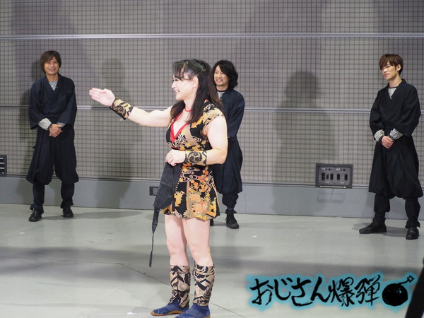 迫力ある忍者くアクションで登場したのは、伊賀麻績服部流忍術正統継承者でもある忍者パフォーマー妃羽理(ひばり)先生。ここでは、レベル1「兎草徒歩(みそとほ)」(足の裏に自分の手のひらを被せて足音をさせずに歩く術)、レベル2「手裏剣」、レベル3「鎌ぬんちゃく」といった忍者らしい技に挑戦。なかでも一番の見所は、本物の鋭利な手裏剣をつかった特訓。的に向かって手裏剣を投げる練習ののち、目隠しで的にむかって投げるといった高度な技に挑戦することに。まずは、妃羽理(ひばり)先生のお手本から。的として現れたのは、頭に風船を乗せたAD。失敗を想像しただけで、会場に緊張感が走る。迫力のあるお手本の成功のあと、3人が挑戦するのだが……ここで小野が奇跡を起こす。どんな奇跡かは、是非その目で確かめて。