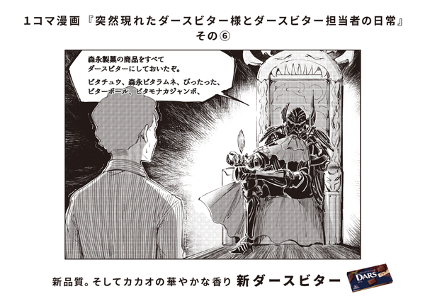 さらに、ダースビターを人気投票で一位にするという熱い想いによってビターチョコの王「ダースビター」様が召喚され、圧倒的なカリスマによって、ダースビターで地球上を埋め尽くすことを画策するという、ダースビター様のコンテンツも特別サイトから楽しめる。