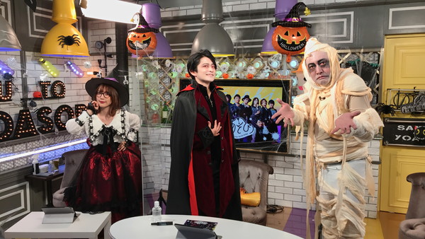 本配信では、仮装したスタッフと共に、魔女姿の内田さんと、吸血鬼姿の下野さんがスタジオに登場。下野さんはキュートな魔女服に眼鏡を合わせた内田さんの姿を「真礼ちゃんいいね!すごくいい!」「ナイス眼鏡で~す!ありがとうございま~す!」と大絶賛。対する内田さんも、妖しい魅力を醸し出す下野さんの吸血鬼姿に「いい!」「格好いいですよ!」と大喜びします。下野さんは吸血鬼の赤い目を表現するために「女子高生に混じってカラーコンタクトを買いに行ったよ~」と話し、ハロウィンの仮装を楽しんでいることを明かしました。