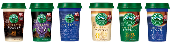 今回のコラボレーションパッケージは、「マウントレーニア」のスタンダード商品3品(「マウントレーニア カフェラッテ」「マウントレーニア カフェラッテ エスプレッソ」「マウントレーニア カフェラッテ ノンシュガー」)にて、「エヴァンゲリオン」の世界観を表現したオリジナルデザインを各2種類、計6種類(3商品×2種類)展開。