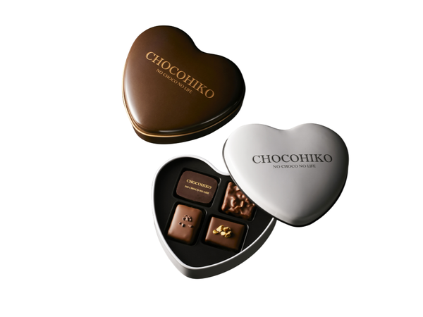 ヘーゼルナッツ、 ピスタチオ、 黒ゴマ(アーモンド&ヘーゼルナッツ)、 アーモンド&ヘーゼルナッツ、 4種類の異なる食感と風味を楽しめるプラリネアソートをハート缶に。 缶の内蓋には、 ホワイト・ブラウン共に違う秘密のメッセージ付き。